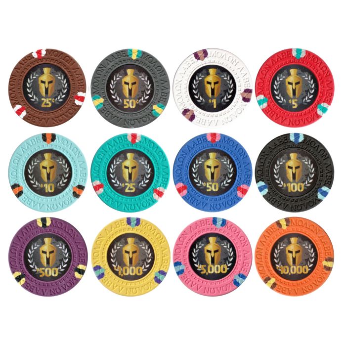 Each order comes with 25pcs of 13.5 gram Spartan poker chips. These poker chips are made of high quality clay material with a metal insert for added professional weight and size. The chips are perfectly balanced and have the look and feel of real casino chips.